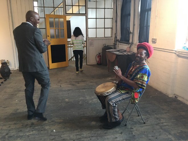 Ahmed Magare’s solo exhitibion The Better Side of Wings at Ort Gallery in Birmingham, UK, on 12-13 August, was a tremendous success. A team of the Writers Without Borders collective (including Femi Abidogun, David Rollason and Ahmed) performed poetry, a video with poetry performances was projected on a loop, Zoom played the drums, and the art installation, a live mural painting, and delicious Somali food made the day into a spectacular happening.